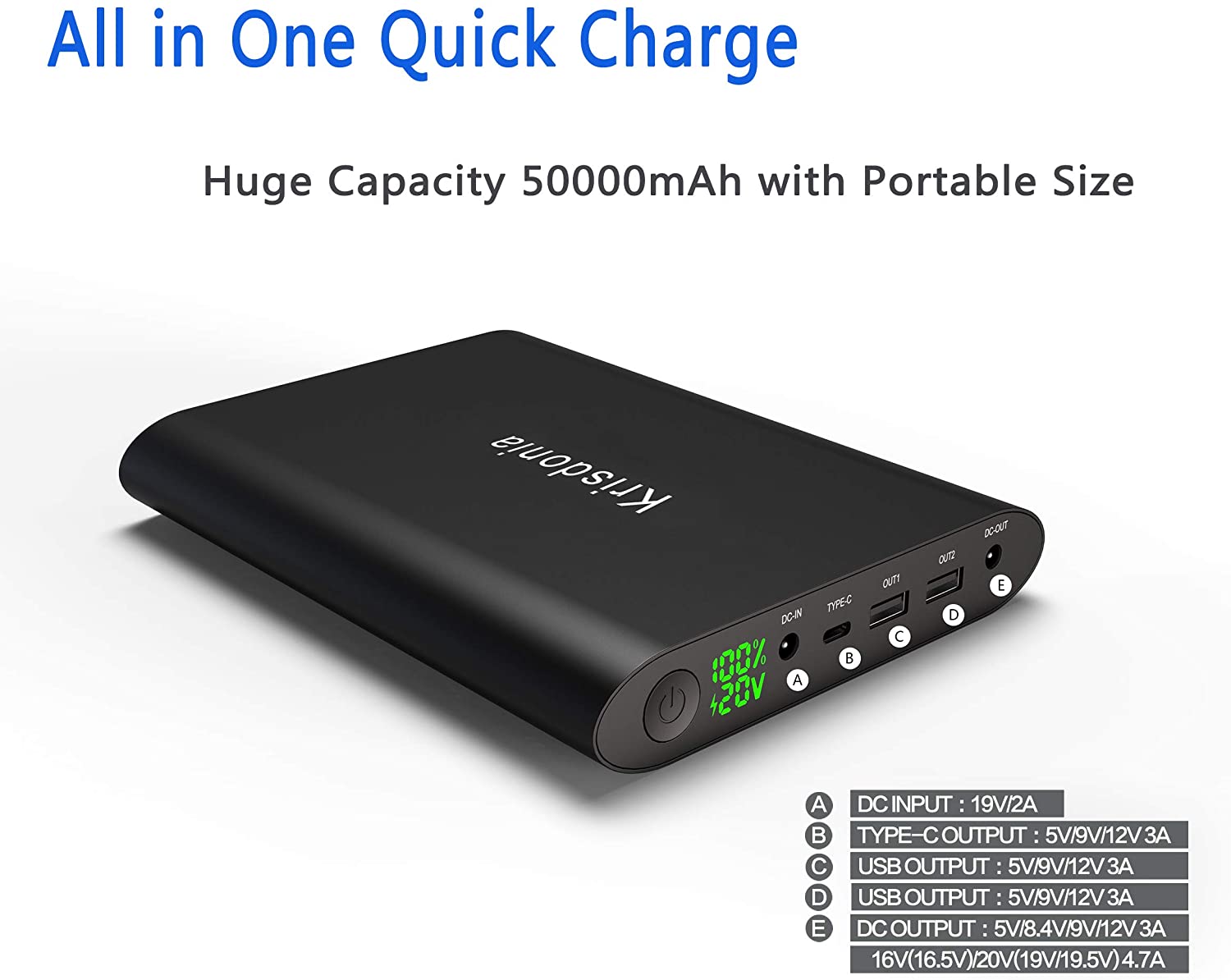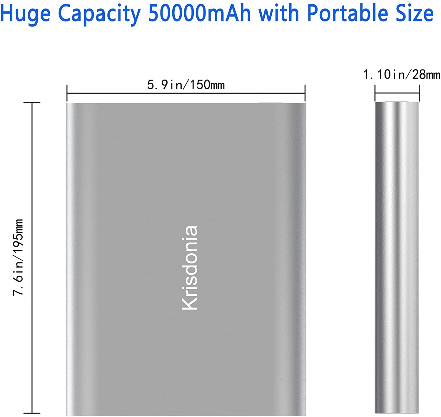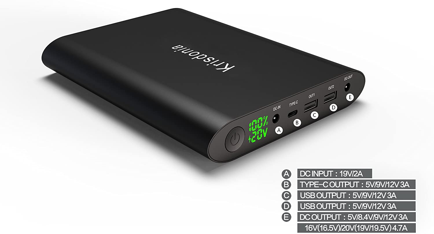 - High Capacity: This 50000mAh(3.7V)/185Wh battery provides enough juice to power a 65W laptop about 2.5 times and smartphone about 11-18 times.