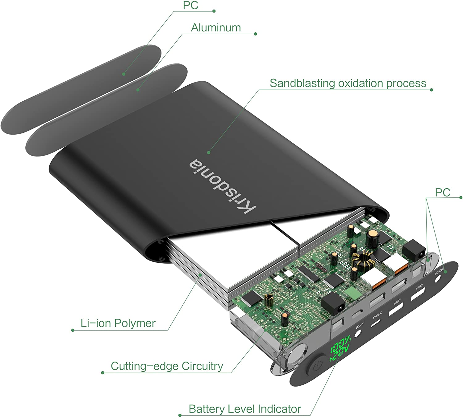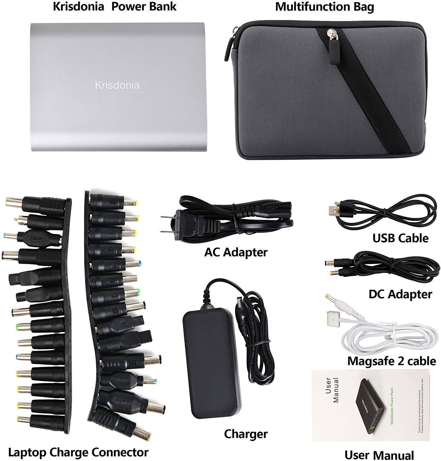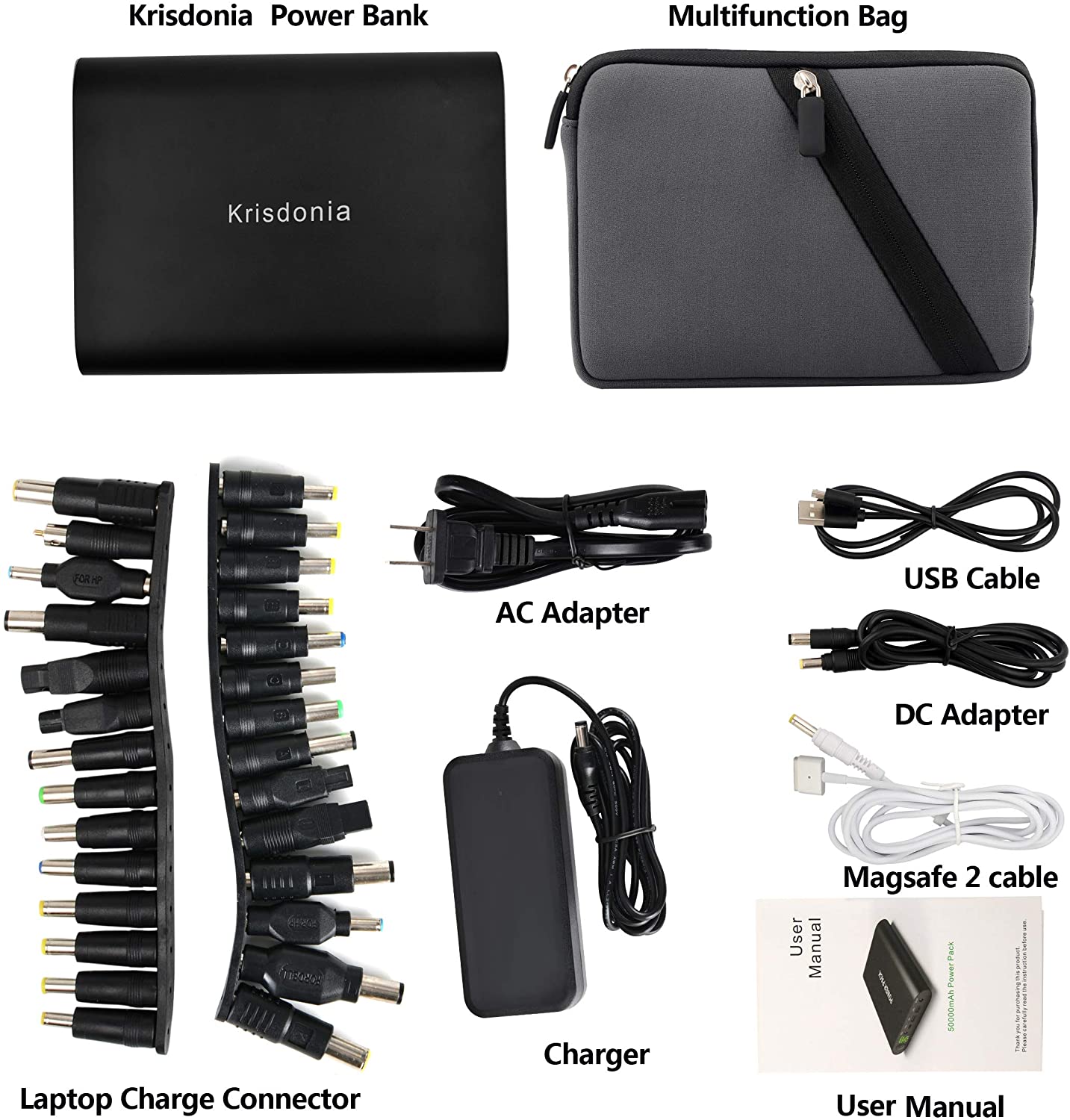 - High Capacity: This 50000mAh(3.7V)/185Wh battery provides enough juice to power a 65W laptop about 2.5 times and smartphone about 11-18 times.