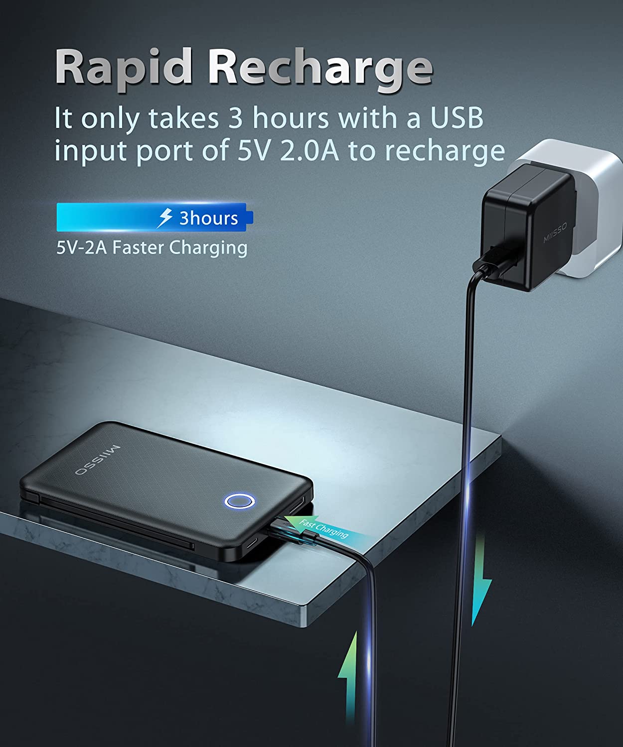 - Rapid Recharge : This type c power bank can only take 3 hours with a USB input port of 5V 2.0A to recharge, which means that it double faster than normal 1.0A iPhone chargers. Usb power bank, battery packs for cell phones, external battery, battery pack charger, portable charger power bank, power bank fast charging