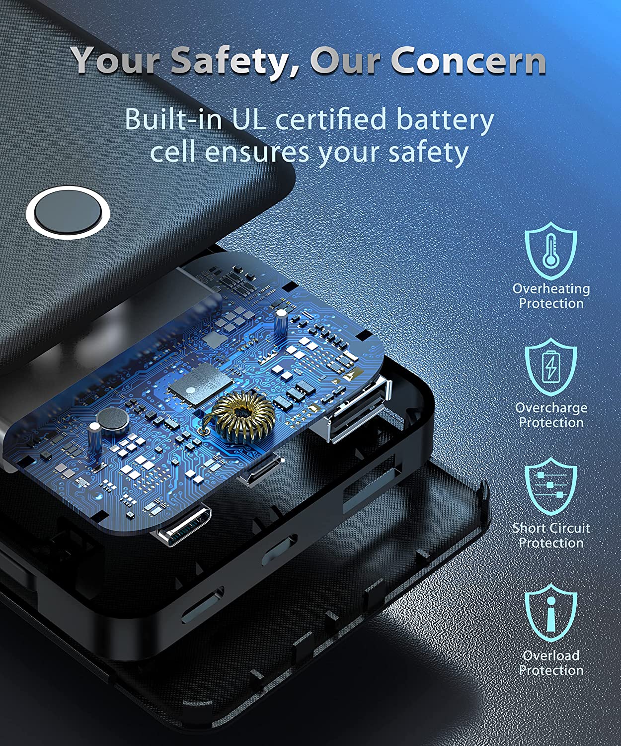 - Your Safety: Our Concern: This external battery built-in UL certified battery cell ensures your safety. 6000 mAh ultra-density safer Li-polymer cell be used, make sure the TG90° power bank ultra-slim and easy to carry and double safer than Li-ion cell battery bank. Power bank usb c, portable phone charger power bank.